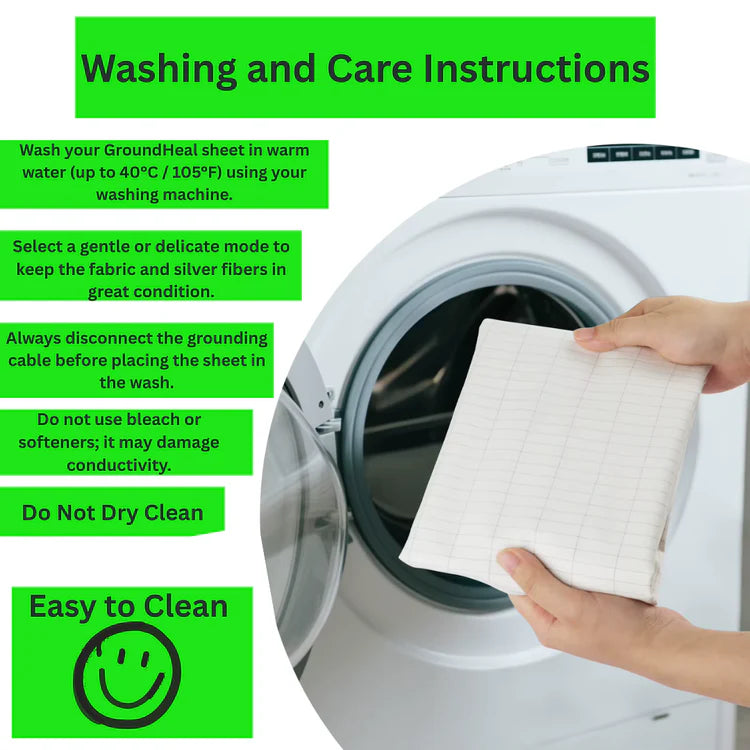 Your GroundHeal™ sheet contains natural silver threads. To protect its special conductive properties and ensure its longevity, please follow these instructions carefully.
