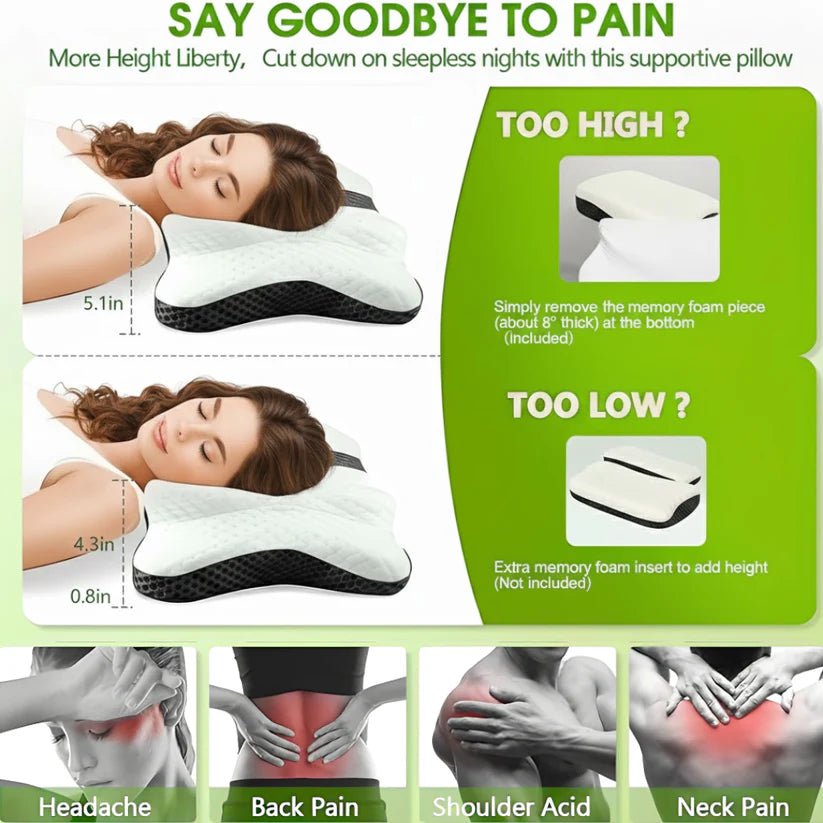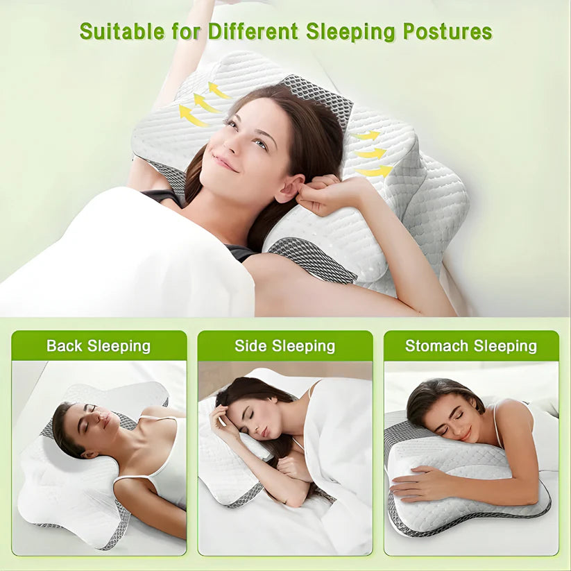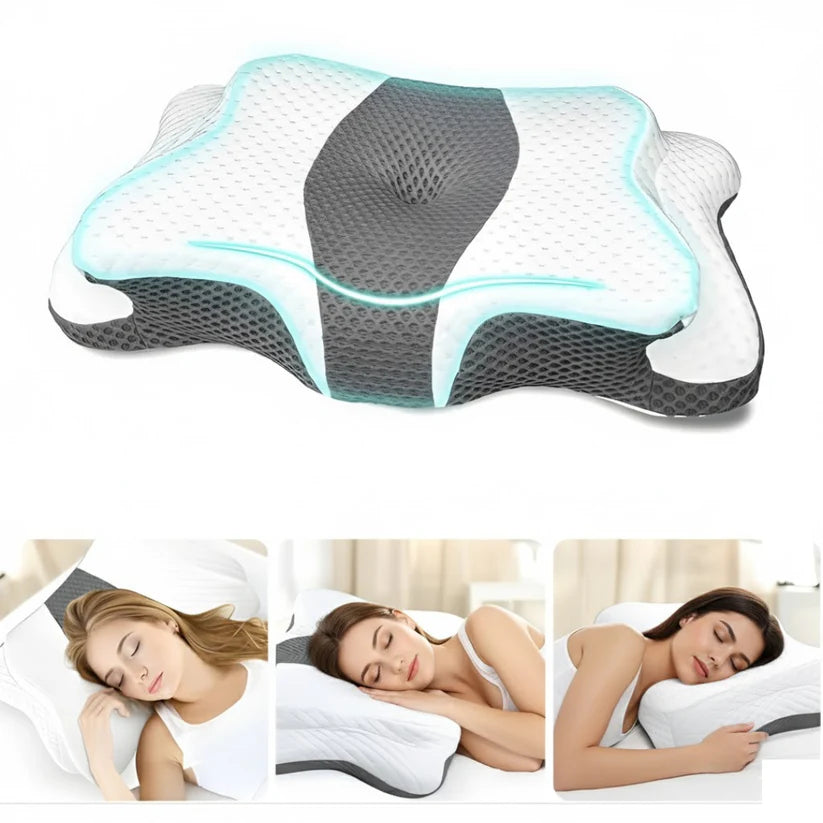Experience deep, restorative sleep with the patented Butterfly Design that gently cradles your head, neck, and shoulders. Featuring six contour zones and a targeted massage point, this pillow helps relieve chronic neck pain, reduce muscle stiffness, and promote natural spinal alignment for true comfort and support.